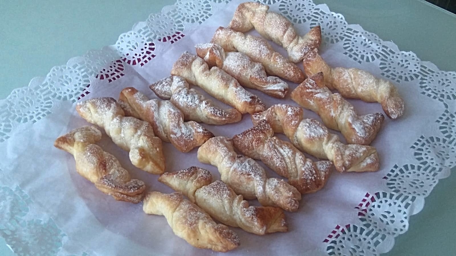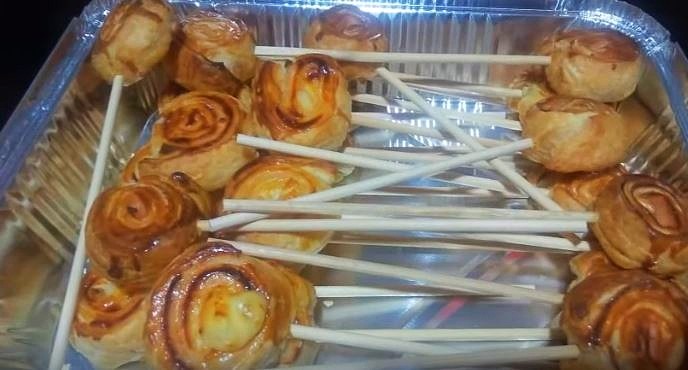 Caramelos de hojaldre rellenos de chocolate blanco.